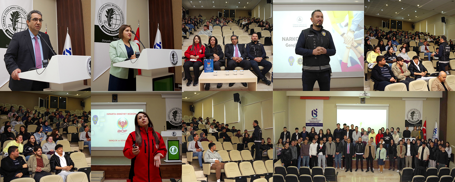 Fakültemiz Konferans Salonunda 16.10.2025 tarihinde saat 10.00’da Orman Mühendisliği ve Orman Endüstri Mühendisliği Bölümleri 1. sınıf öğrencilerine dönük Üniversitemiz Bağımlılıkla Mücadele Koordinatörlüğü faaliyetleri kapsamında, Bağımlılıkla Mücadele Oryantasyon Eğitimi gerçekleştirildi. Dekan Yardımcımız Prof. Dr. Yasin KARATEPE hocamızın açılış konuşması ile başlayan programda, sonrasında Bağımlılıkla Mücadele Koordinatör Yardımcısı Öğretim Görevlisi Selin TEKOCAK tarafından Bağımlılıkla Mücadele Koordinatörlüğü’nün faaliyetleri ve Kızılay'ın tarihçesi hakkında bir sunum yapılmıştır. Daha sonra, Isparta Emniyet Müdürlüğü Narkotik Suçlar Mücadele Biriminde görevli Engin ÇAĞLAR tarafından “Bağımlılıkla Mücadele” konusunda, Terörle Mücadele Biriminde görevli Gamze ALTAN tarafından “Terörle Mücadele” konusunda, teması; özellikle öğrencilerimizi kendilerini bağımlılık ve terör tehlikesinden uzak tutmak için öğrencilik hayatlarında dikkat etmeleri gereken hususların neler olduğu konusu olan sunumlar gerçekleştirildi. Programın son kısmında öğrencilerden gelen soruların cevaplandırılmasının ardından topluca fotoğraf çekimi ile program son bulmuştur.