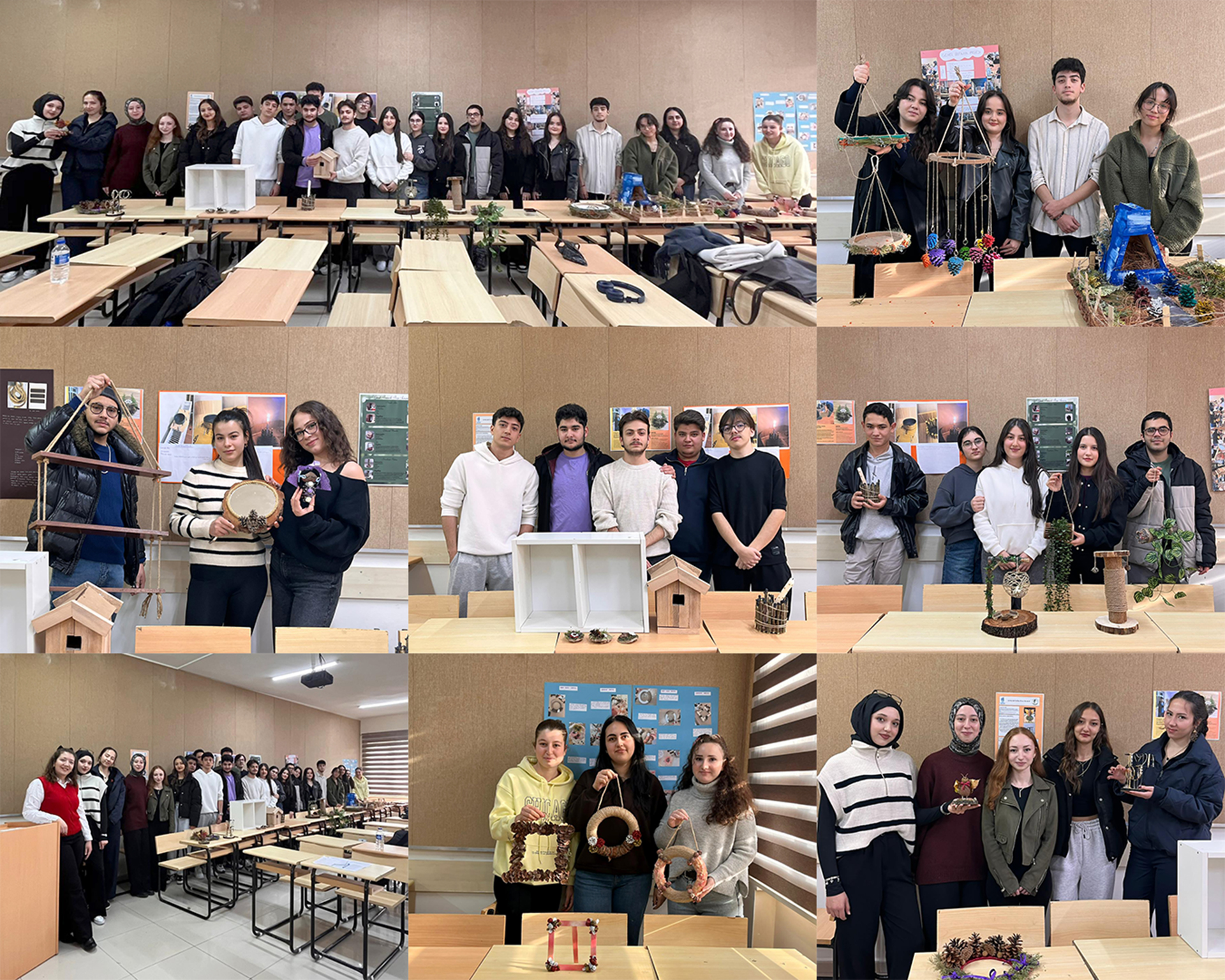 2025–2026 Eğitim-Öğretim Yılı Güz Yarıyılı “Genel Botanik” dersi kapsamında, 23.12.2025 tarihinde Orman Endüstri Mühendisliği 1. sınıf öğrencileri proje ödevi sunumlarını gerçekleştirmiştir. Sunumlar, dersi yürüten Dr. Öğretim Üyesi Fatma Merve NACAKCI eşliğinde yapıldı. Ders kapsamında öğrenciler, bitkilerin kısımlarına ilişkin edindikleri bilgileri uygulamaya aktararak; kitaplık, kapı süsü, broş, dekoratif kutu, biblo, kuş evi, fotoğraf çerçevesi, kuş yemliği, kedi tırmalama oyuncağı, saksı, mumluk, dekoratif lamba, ayna, takı organizatörü ve sepet gibi çeşitli ürünler tasarladı. Projelerde; Kızılçam, Karaçam, Meşe ve Gürgen ağaçlarının gövde ve dalları; Kızılçam, Karaçam, Sarıçam, Toros Sediri, Sabin ardıcı ve Akdeniz Servisi türlerinin kozalak ve yaprakları; Çınar ağacının kozalakları; Sekoya ve Kavak ağaçlarının yaprakları; Toros Sediri’nin erkek çiçekleri; Meşe ağacının palamutları ile Ateş dikeni çalısının meyveleri kullanıldı. Gerçekleştirilen etkinlik sayesinde öğrenciler, ders kapsamında öğrendikleri teorik bilgileri uygulama ile pekiştirme, birlikte fikir üretme ve uyum içinde çalışma, iş bölümü yapabilme, proje yönetimi ve sunum becerileri kazanma fırsatı buldu. Ayrıca etkinlik, ekolojik ve ekonomik ürün üretimi, sürdürülebilirlik ve geri dönüşüm konularında farkındalık oluşturması açısından da önem taşımaktadır.
