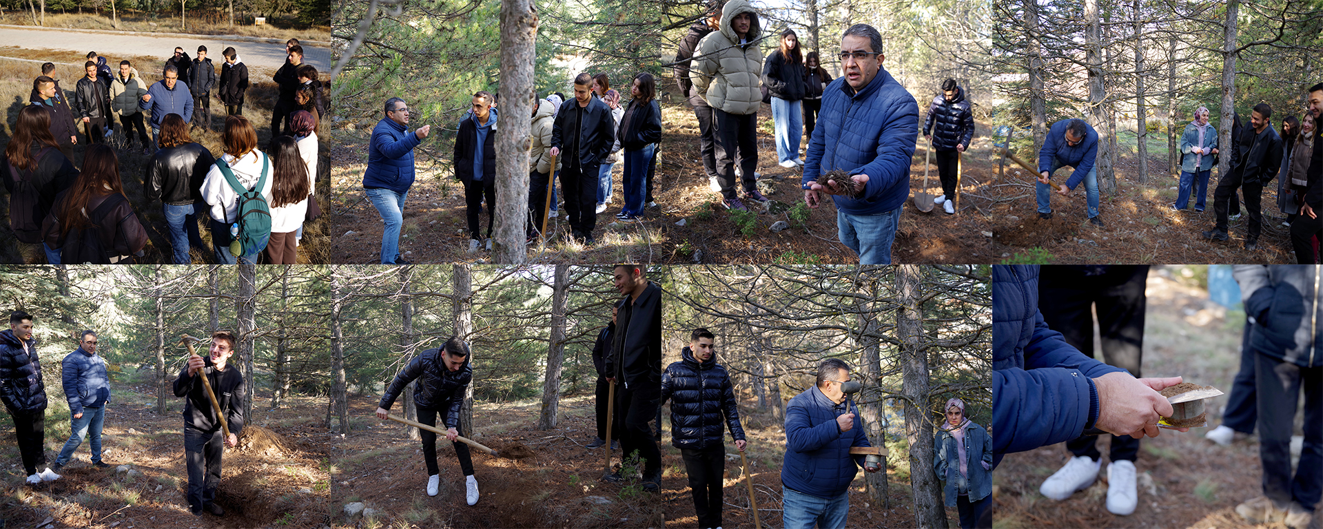 Orman Mühendisliği Bölümü 2. Sınıf Öğrencileri Prof. Dr. Yasin KARATEPE eşliğinde, “Toprak İlmi” dersi kapsamında Üniversitemiz Batı Kampüsünde yer alan sedir ve karaçam meşcerilerine 15.12.2025 tarihinde arazi uygulama gezisi gerçekleştirmişlerdir. Ders kapsamında öğrenciler, sedir ve karaçam meşcerelerinin ölü örtülerini arazide inceleyip irdeleyerek, ölü örtünün orman ekosistemi için önemini arazide gözlemlemiş ve değerlendirmişlerdir. Ayrıca öğrenciler arazide uygulamalı olarak, toprak profili açma, profilin incelenmesi ve toprak örneği alınması konularında bilgilendirilmişlerdir.