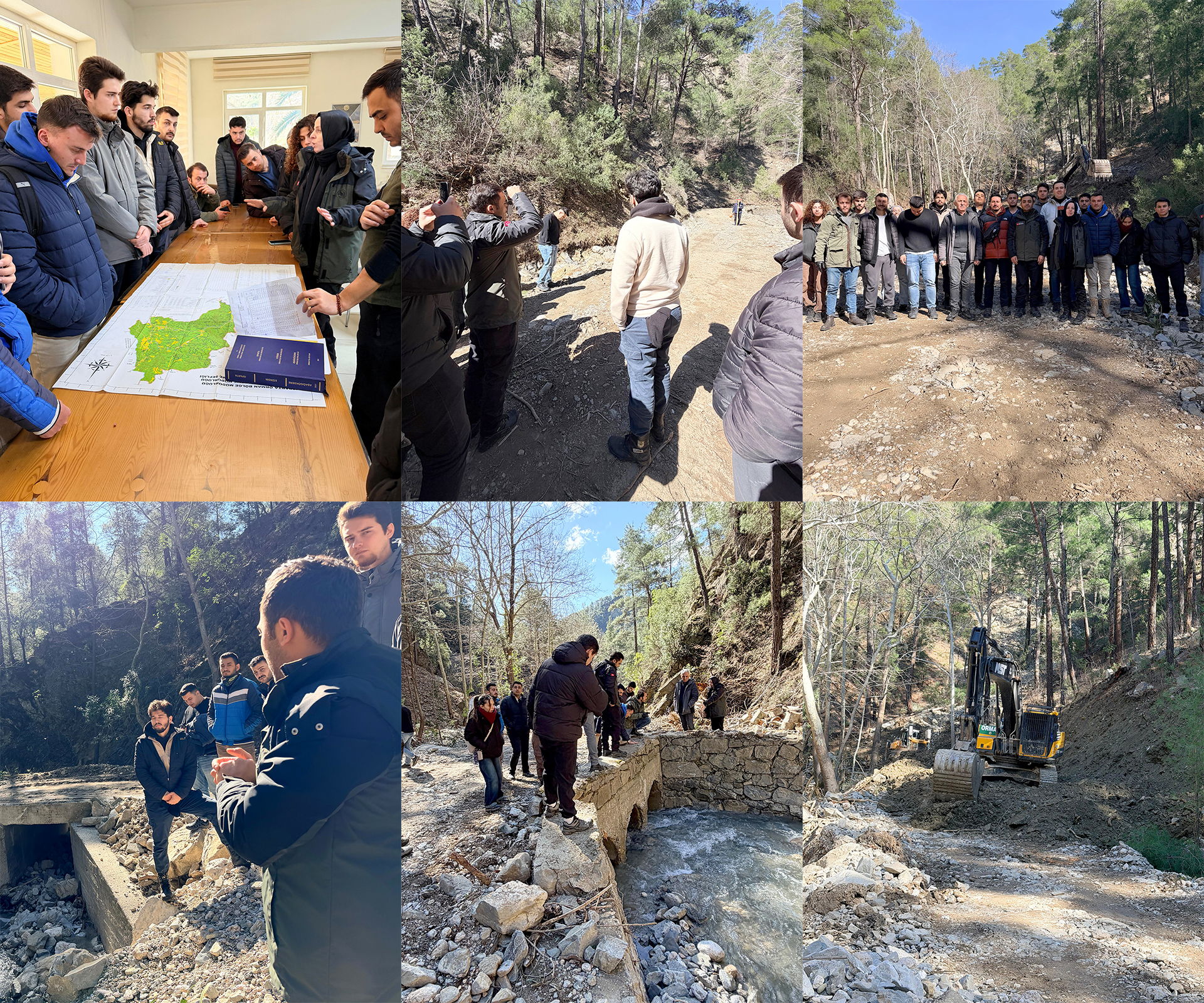 Uygulamaya Isparta Orman Bölge Müdürlüğü’nden Aşağıgökdere Orman İşletme Şefi Mehmet Kumkaya, Makine ve İkmal Şube Mühendisi Elif Avcı Çelik, İnşaat Teknikeri Bekir Kaymaz ile Orman Mühendisliği Bölümü sorumlu öğretim elemanı Doç. Dr. Mehmet S. Özçelik katılmıştır. Uygulama kapsamında öğrencilere orman yolu planlama ve uygulama süreçlerine ilişkin teknik bilgiler aktarılmıştır. Memleket haritası üzerinde uygulama yapılacak alanın etüdü gerçekleştirilmiş; yol planlaması aşamaları, yol kodları ve rumuzlarının anlamları açıklanmıştır. Ayrıca etüt karnesinin doldurulma esasları detaylı şekilde ele alınmıştır.